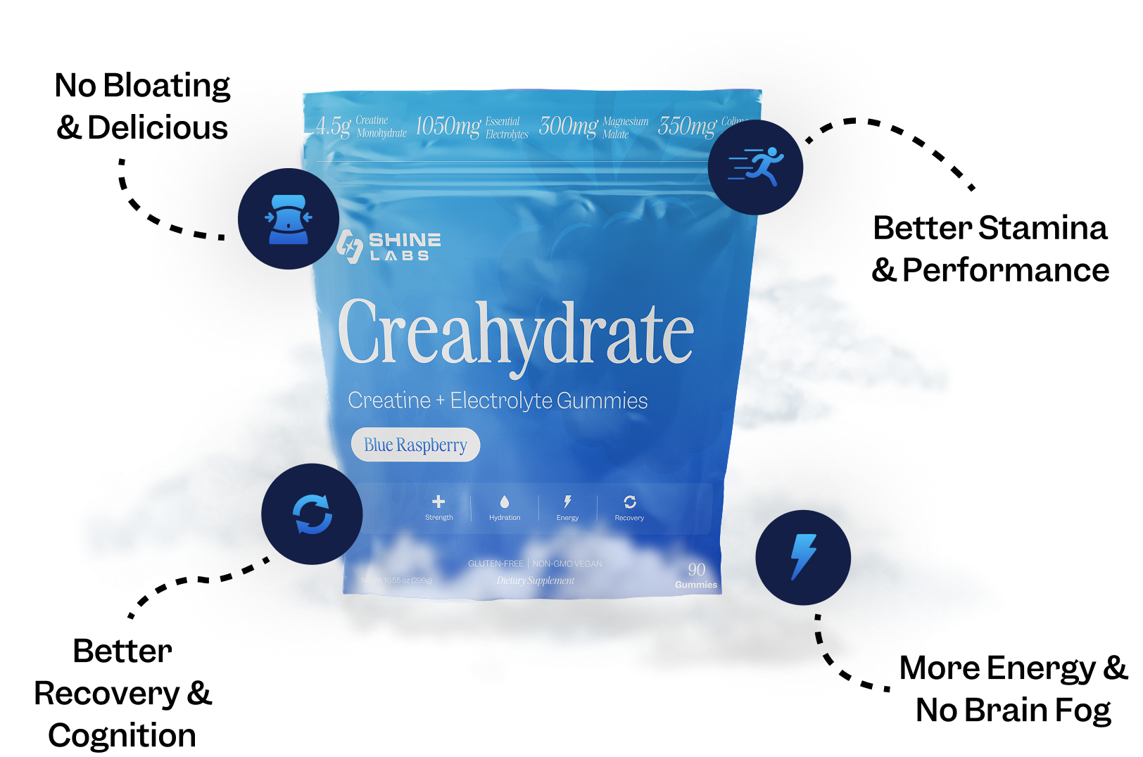 Creahydrate makes daily creatine enjoyable and effective. It supports performance, hydration, and recovery in a clean, great-tasting gummy. No scoops, no powders, no bloating.